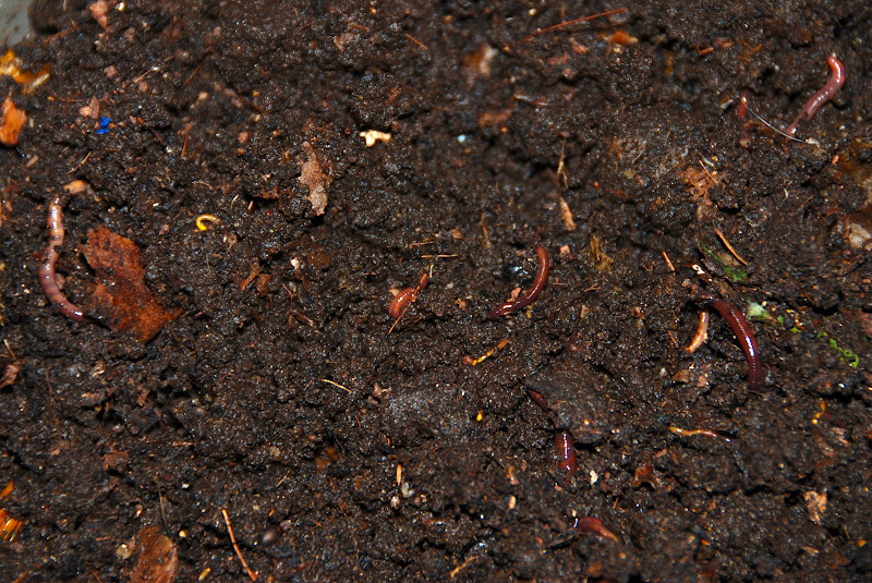 1)堆肥がウェットな粘土か泥のような感じになっていて、その中にミミズが埋もっている感じになっていた。