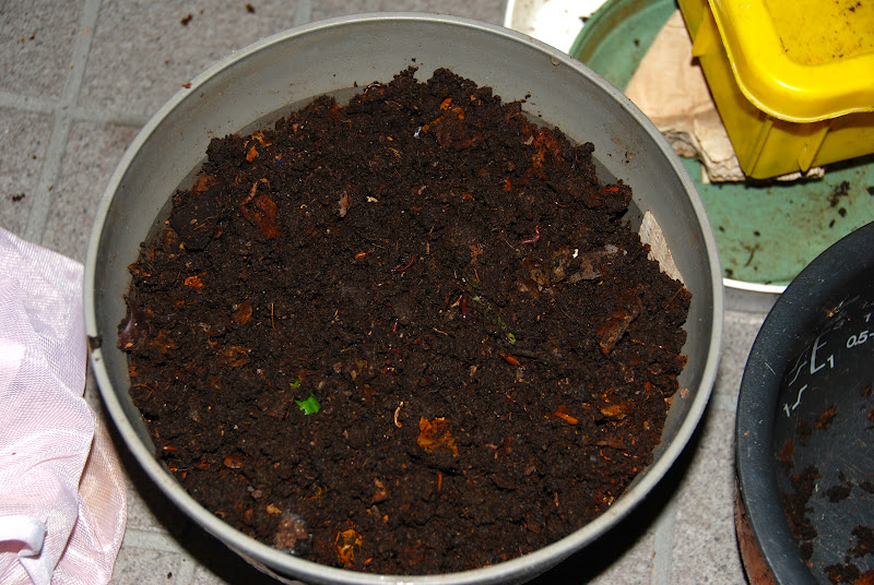堆肥は結構立派に出来ていたのだがウェット気味。その上ミミズが小さいとなると、分別したところでヤ〜メタ。ということになった。