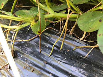 花が咲いたところから土の中に潜って落花生の実を付ける子房柄はマルチで行き止まりになっていたのだ。