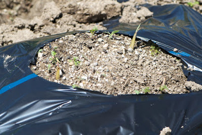 今日ポット苗を畝に移植したのだが、ポット苗より直播きの方が少し成長も早かったみたいだ。