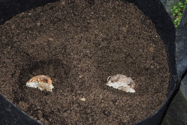 通常の里芋なら、ある時期に芽掻きなどするのだが、今日植えた2片の種芋は芋虫の除去以外は何も手を加えないでみてみようと思う。