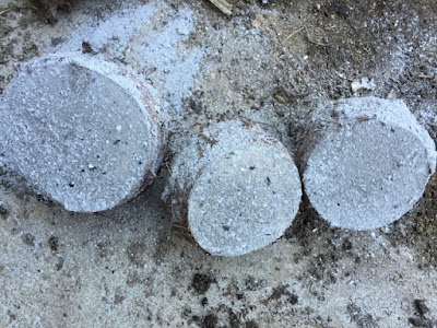 | みみず君の餌。左はウェットな芋。 中ほどの白く見えるのは逆さ植えのため頭を切った切れ端。 右にあるのが、米袋の中で乾燥したまま腐った芋。 |