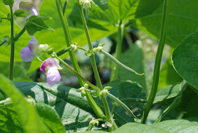 これは蔓なしインゲン。花が咲いたあとに小さな豆がついている。