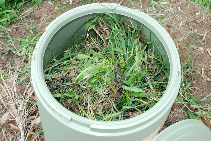 イネ科雑草をミミズが食べるなら,雑草を収穫してミミズ君に食べさせよう。
