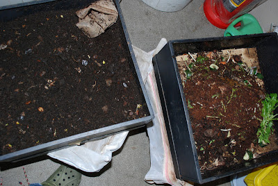 それでも移動をいやがっているみみず君に対しては、あとで光と振動刺激を与え,更に移動してもらい、ほとんどみみず君が残っていない上の段の上層から堆肥を収穫していく。