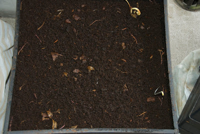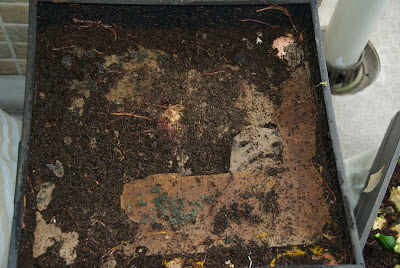 | これがどんぶりの下の段。 ここに金子下段の堆肥と大部分のミミズが移されている。 |