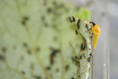 リリースしたテントウムシやその幼虫たちが、ニームオイルやトウガラシスプレーに負けなかったアブラムシを片付けてくれると嬉しい。