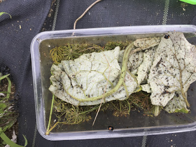 これまで、ディルの畝で見つけたテントウムシの成虫や虫カゴで羽化した成虫は、タッパーに回収し、アブラムシがもうすぐ集まるはずのゴボウの苗の根元にリリースすることにしていた。