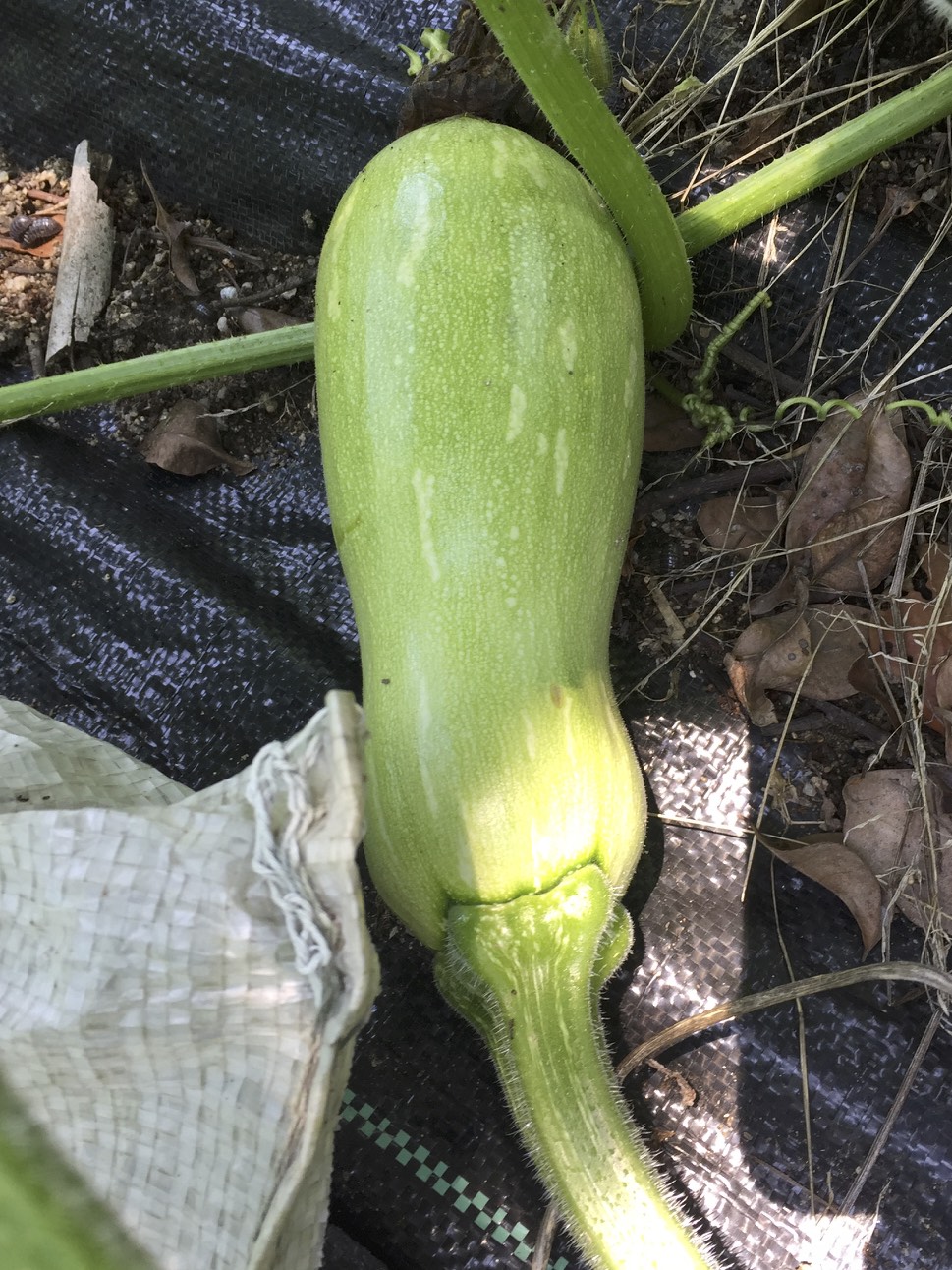 | こちらは今日収穫した長いカボチャ。 |