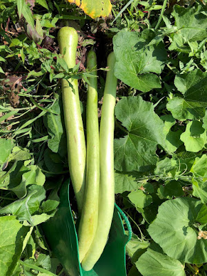 この長いズッキーニはイタリアのシチリア地方の名産物で、6~7年前に種をゲットして、その後は自家採取種を蒔いて毎年育てている。