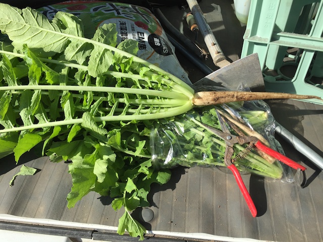 この時期からは、間引きしたダイコンの葉の方は、食べる時少しごわごわ感が出てくるかもしれない。