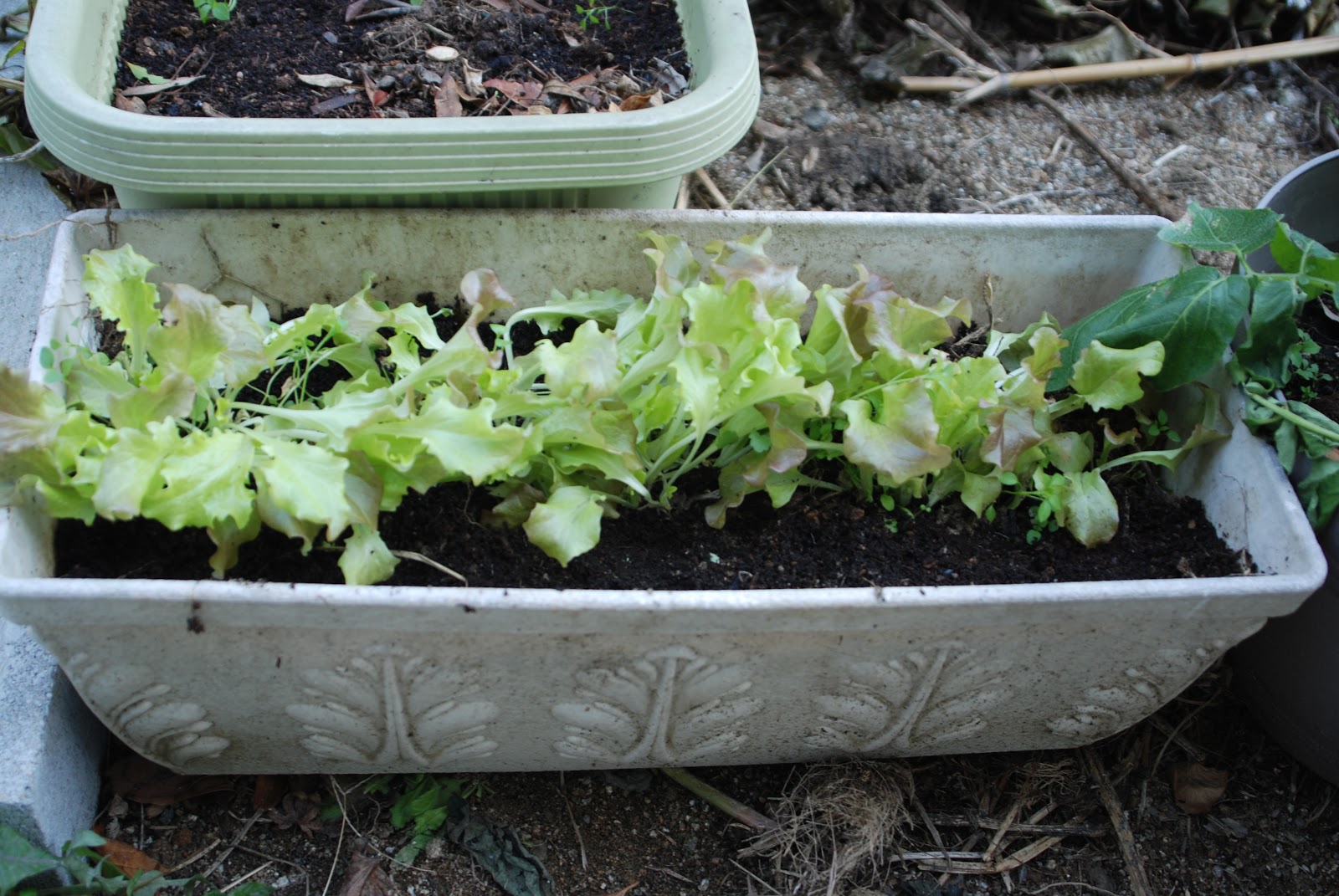 そこで、ダメ元で間引いたサニーレタスの苗を数本を移植してみた(12/3)。チンゲンサイも少し移植してみた。