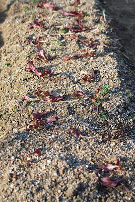 そこで、さらに間引き野菜をいくつかの畝に移植してみた。