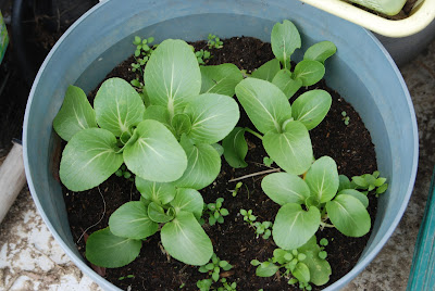その頃プランターに植えたサニーレタスやチンゲンサイは小さいながらも元気がよく、間引きが必要と思われた。