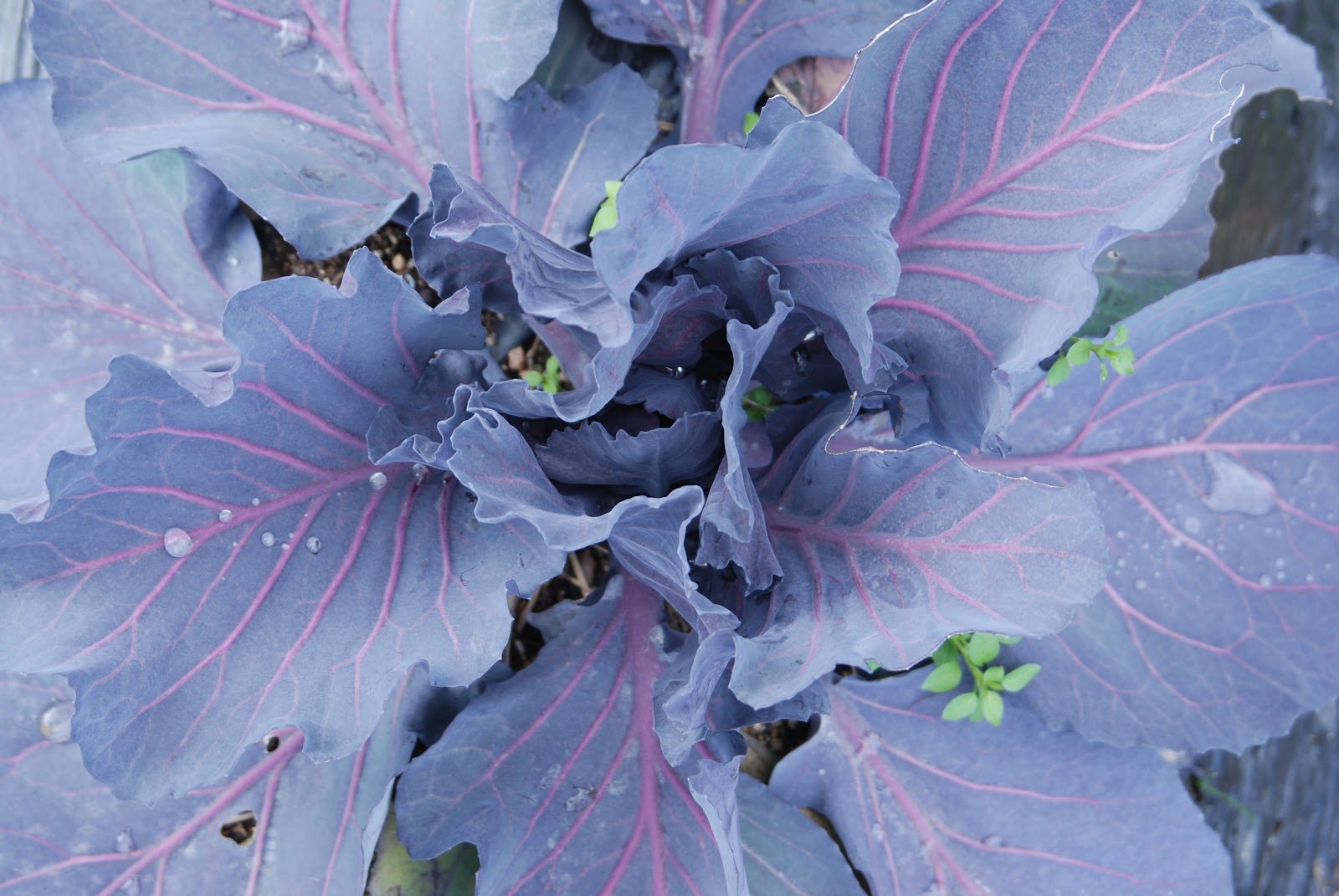 一つは下の写真の紫色の葉の野菜。キャベツのように見えるのだが。
