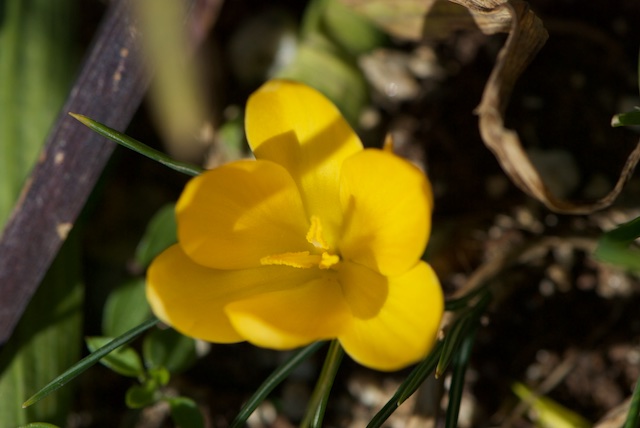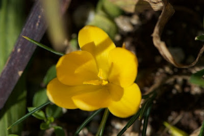 | こちらは花壇に咲き始めたクロッカス。 この明るい黄色は、春の訪れを感じさせてくれる。 |