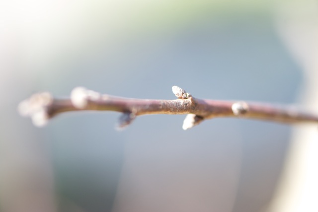 残した枝の先を見ると、花芽か葉の芽か分からない芽が付いている。
