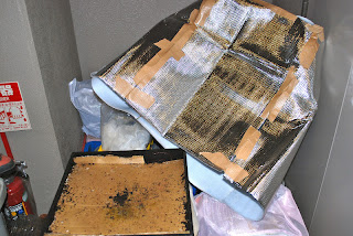 それらのみみず君も小屋に戻し、最後に段ボールで蓋をして終わり。