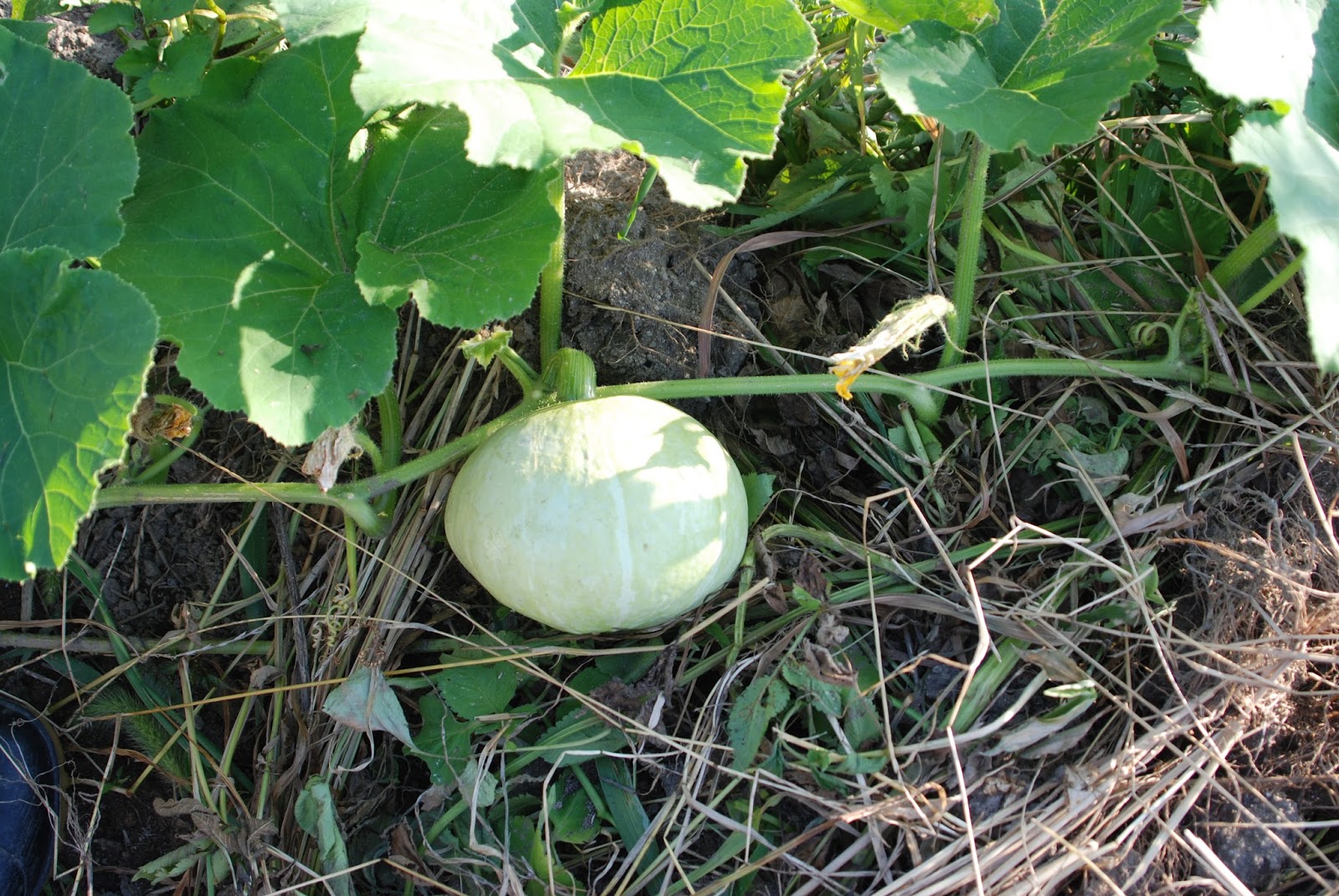 なぜか白いカボチャだ。まだ小さかった。