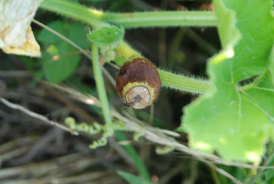 1週間程前に雑草の中の袋栽培で育てているカボチャを見に行った。