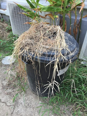 一方、第2菜園に置いている2個の雑草ミミズコンポスト(3号、4号)は、最近詰め込んだズッキーニの茎葉で、蓋が閉まっていない。