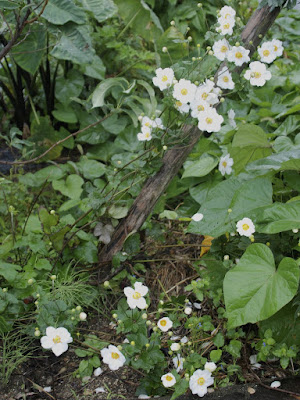 雨で、寂しそうに咲いていた畑の側の満開の秋明菊も喜んでくれている?