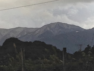 通勤途中に見える井原山、雷山も例年よりかなり早く初冠雪だ。