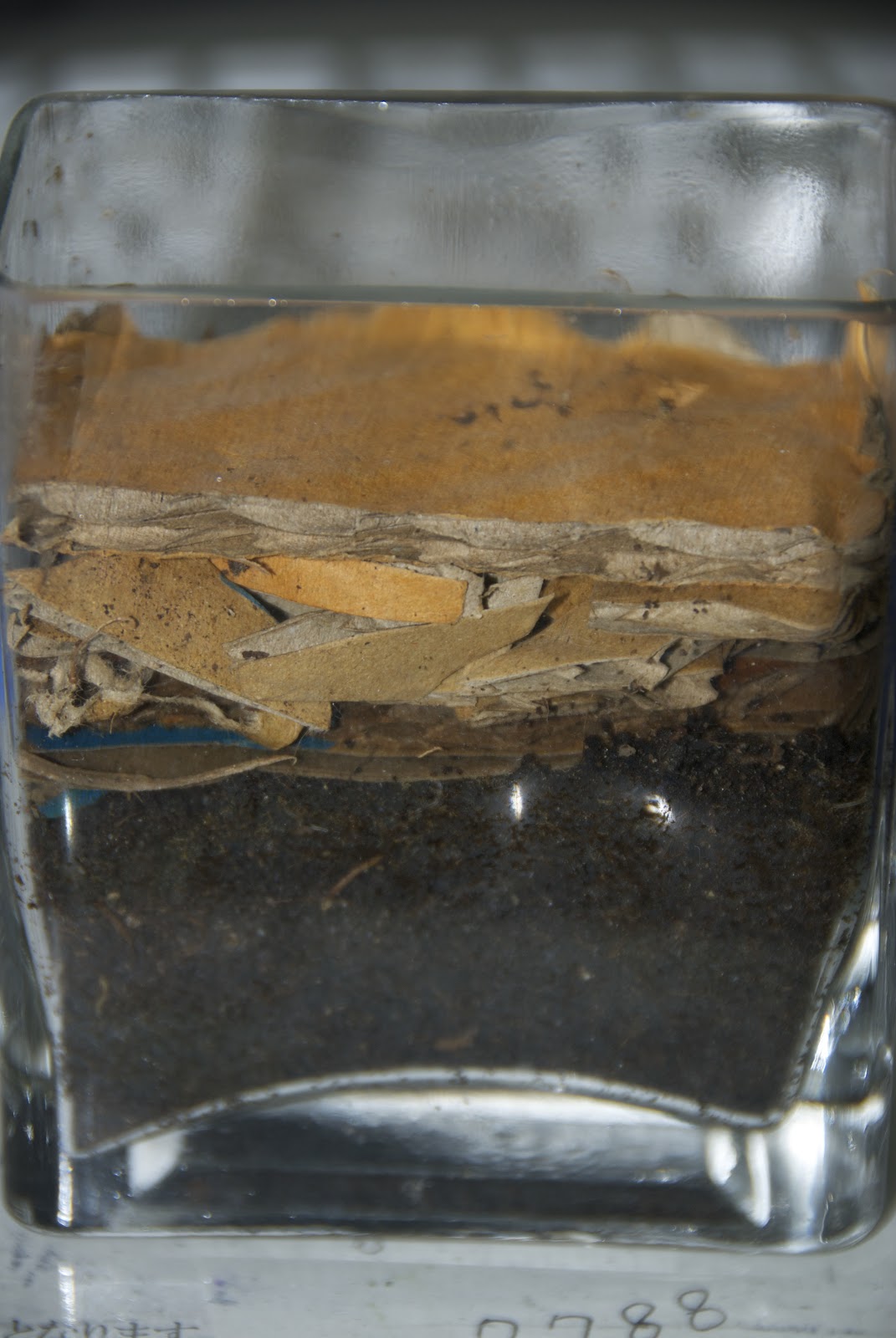ところで、寒いこの時期シマミミズの卵が孵化しにくいので、室外での孵化実験と室内での孵化実験をおこなっているが、室内での実験では外から卵が見えるようにしていた。