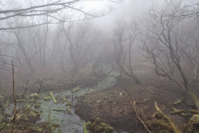 駐車場付近から霧で、雨ガ池付近の足場は悪かったが、なかなか趣があった。