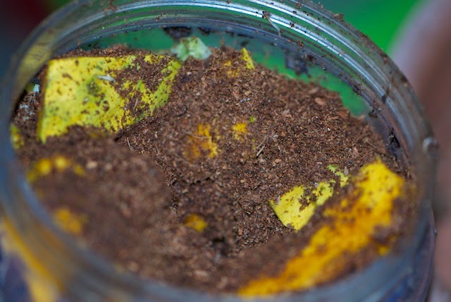 | 今回も餌としてカボチャをたくさん与えておいた。 ミミズ小屋の餌としてここのところ重宝してきたカボチャも今月いっぱいで終わりそうだ。 |