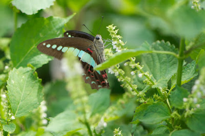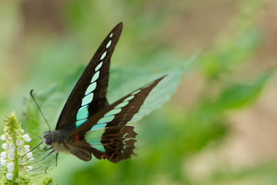 こちらは、数日前青シソの花穂に蜜を吸いにきていたアオスジアゲハ。