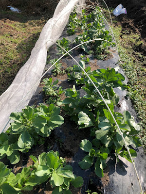 それでも、今ある苗には、軽い防寒とアブラムシ予防を兼ねるように下の写真のような防虫ネットを掛けていた。