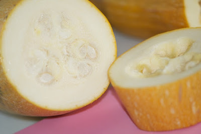 | この部分になると種が見えてきた。 そして、右側の輪切り部分から種を取り出してみた。 |