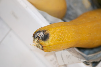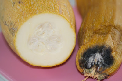 先日、黒くなった白ズッキーニは、その近くの種がカビていた。