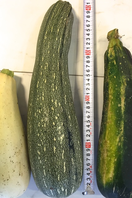 さて、下の写真は、7月の中旬に種取り用に収穫した黄緑ズッキーニ。