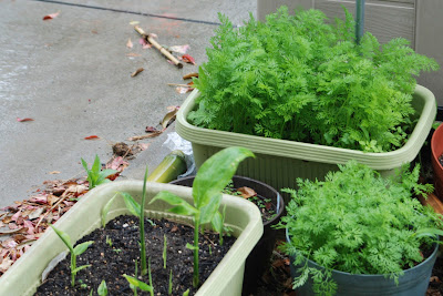 プランターのニンジンも数時間でちょっと背を伸ばしたように見えた。