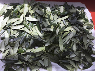 切ったオリーブの枝からは、葉っぱを少し収穫した。