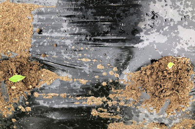 しかし、出たと思われる芽が途中で切れて無くなっている植え穴が幾つかあった。