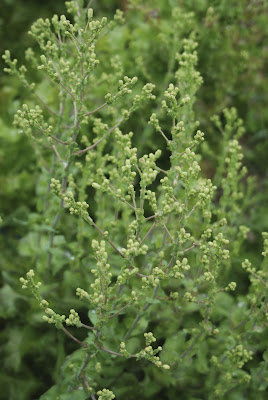 | 倒れていないサニーレタスの花芽はもちろん真上に向かう。 倒れたサニーレタスでも真上に向かうのだが、なぜかこちらがより逞しく見える。 |