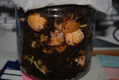 昨日の観察小屋2号、1日経過して、悪臭なし、ミミズの脱走なし、まだみみずが銀杏の果肉を食べるかどうかは不明。今日はより実験結果が早く出ると思われるメインの観察小屋1号で同じ実験をやってみることにする。