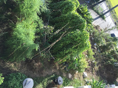 | 先日まで青シソが茂り過ぎてうっとうしかった。 やっと少し片付き、少しづつ秋冬野菜を植えている。 |