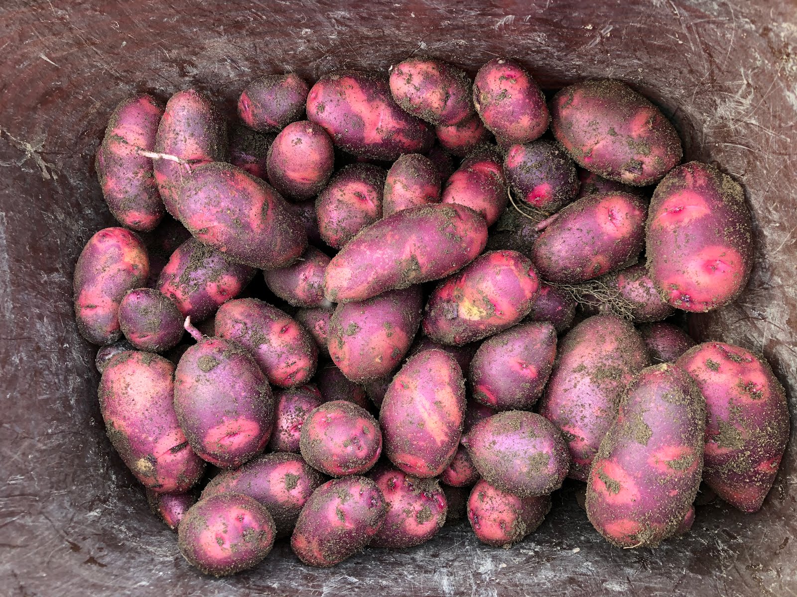 それなりにピンク色の種芋の方は出来ていた。 同じような株がまだたくさんあるが、しばらく置いて収穫した方が良さそうだ。 |