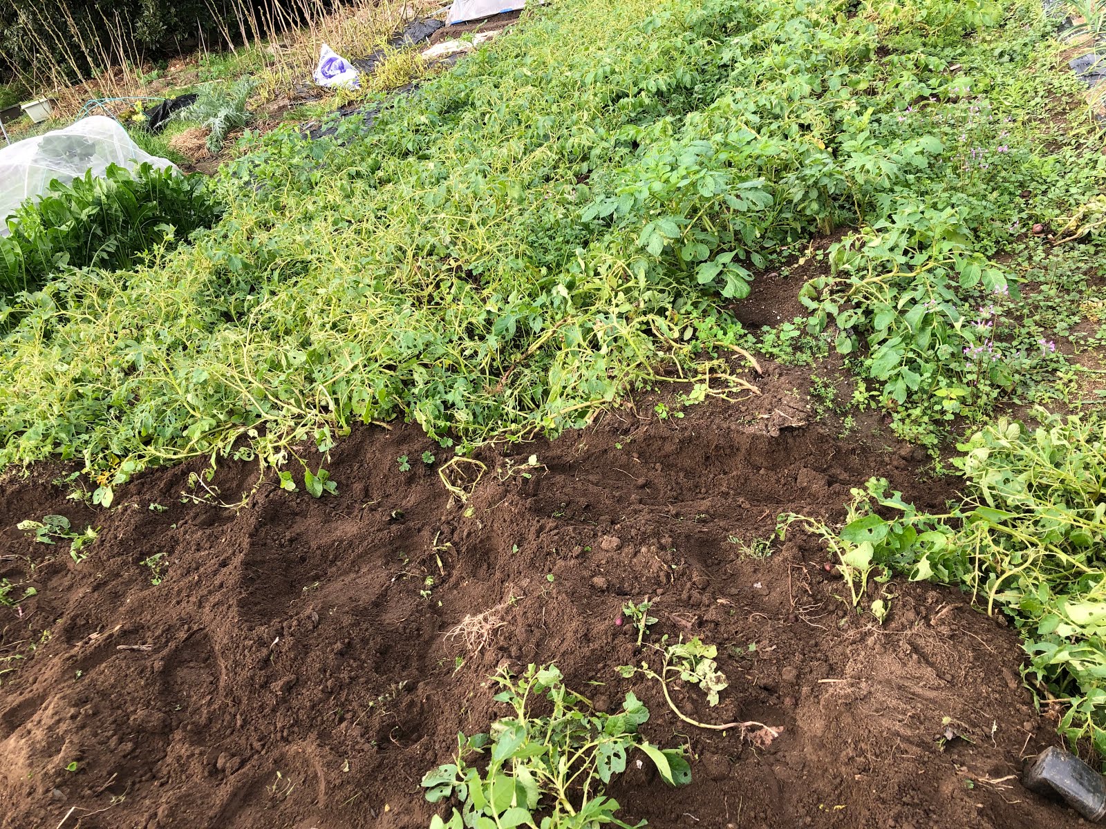 今日は昼過ぎまで雨に降られずに済んだので、午前中芋類を一気に収穫した。