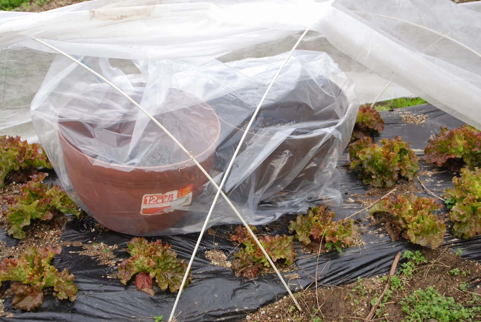 | パオパオ内では、サニーレタス、ホウレンソウ、春菊などが育っている。 |