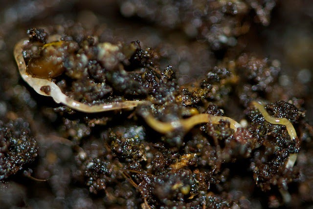 やや大きめのミミズも、シマミミズの赤ちゃんだとしたら、まだ1ヶ月も経っていない感じだ。