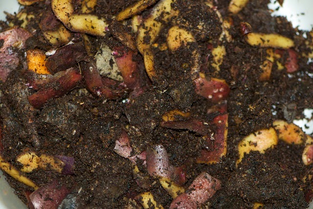 与えた餌のうち、カボチャは食べてしまっているが、下の写真の様にジャガイモの皮は残っていた。
