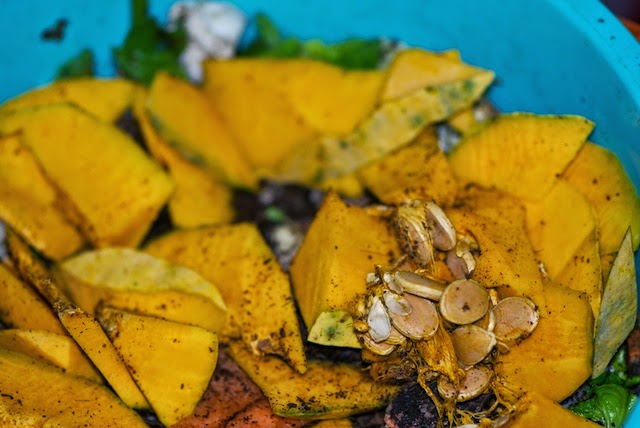 餌としては、残ったジャガイモの皮などの餌に、またすぐ食べてくれるであろうカボチャを加えておいた。
