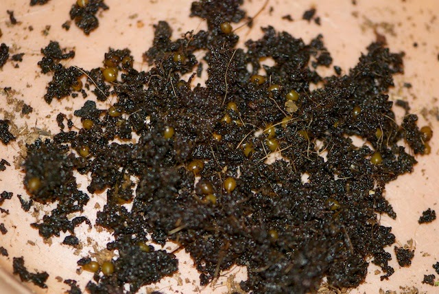 | 卵胞は多いが、やはり寒くなってきたためか孵化したものは?だった。 それでもなぜかミミズ君は2匹増えていた(前回が数え間違い?)。 |