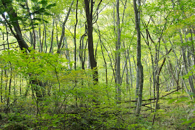 今日は黒岳原生林から風穴までの山歩きをしてきたがこちらのルートには今朝はまだ誰も通っていなかったようだ。登山道には蜘蛛の巣が張っていた。