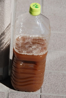 ということで、上の写真のように、10日前、糖蜜と米のとぎ汁を用意した。